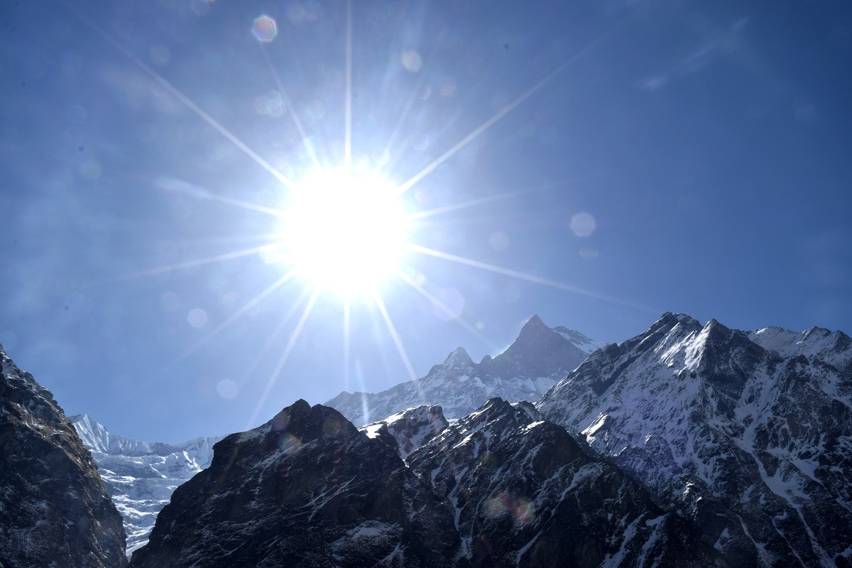 उत्तमको हालत झन् बिग्रियो। टाउको फुट्लाजस्तो हुन थाल्यो भन्दैछ ऊ। हालत मेरो पनि उस्तै छ। तर, स्थिति ‘कन्ट्रोल’ गर्न सक्ने अवस्थामै थिएँ। उत्तमको स्थिति झनै बिग्रिए जस्तो भएपछि हामीले त्यहीँ केही फोटा खिच्यौं। फोटोमै क्याप्चर भयो हिउँ नै हिउँले ढाकिएको बेसक्याम्प। हिउँ नै हिउँले ढाकिएको अन्नपूर्ण हिमश्रृंखला।