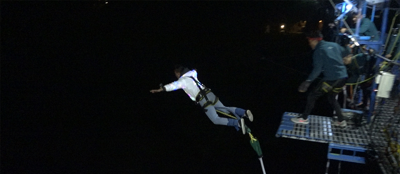 एकजना ७० केजी तौलवाला दाइको पालो थियो। त्यसपछि मेरो र समृद्धि दिदीको। दाइ चिच्याउँदै तल हराए। मेरो पालो आयो। म भित्रभित्र थर्कमान थिएँ। यस्तो बेला बुवा, ममी, दाइ र साथीभाइ सम्झिन्छन् भन्ने सुनेको थिएँ। मैले त सम्झिने होस् पनि गुमाएछु। जीउमा बञ्जी किट लगाउन थालियो। मन हड्बडाउन थाल्यो।