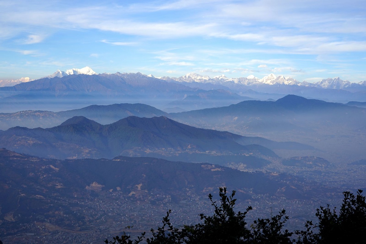 त्यहाँबाट उत्तरतर्फ शितल, चाँदीका लहरझैं उभिएका हिमाली श्रृंखला र तल खाल्डोमा काठमाडौं उपत्यका मोहित पार्ने किसिमको देखिन्थ्यो।