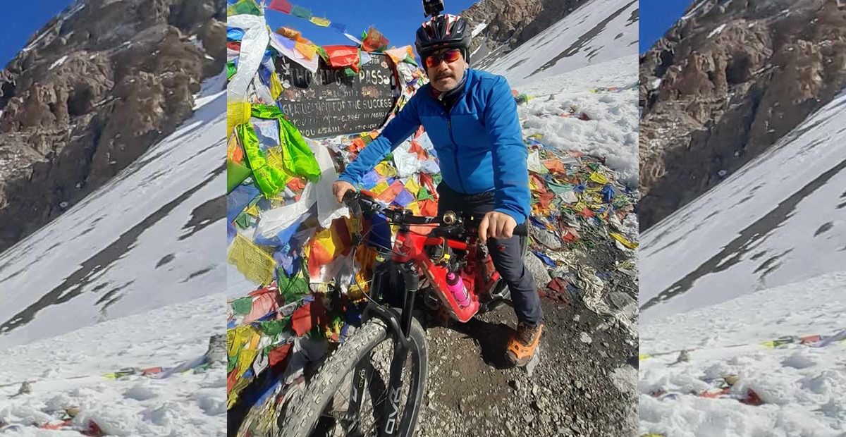 साइकल उचालियो, साइकलसहित चढेको प्रमाण तथा सम्झनाको लागि। त्यो महत्त्वपूर्ण क्षण थियो मेरो साइकलयात्रा जीवनको, सबभन्दा उचाइमा कठिनाइले पुगेको गन्तव्य!