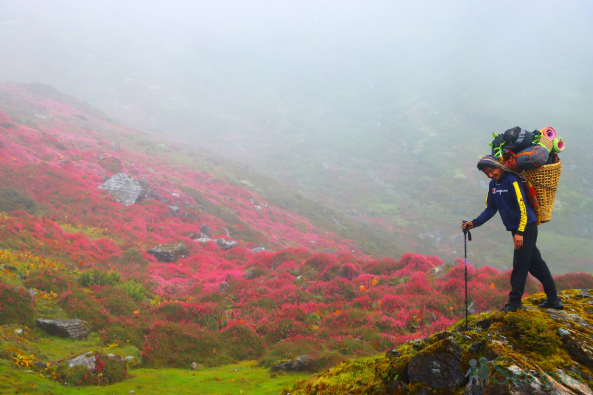 वर्षायाममा बाटो फूलहरूले चित्ताकर्षक हुन्छ। ठोस्ने, सिन्दुरे मेन्दो फुलेका झ्यालराहरूले यात्रालाई रंगीन सपनामा बदलिदिन्छन्। टाढा टाढासम्म फैलिएका गाउँबस्ती नियाल्दा थकान, भोक, प्यास सबै विर्सिन्छ। करिब आधा दिनको कठिन यात्रापछि लुइकेप पोखरी भेटिन्छ—४५५५ मिटरको उचाइमा। धार्मिक र प्राकृतिक दृष्टिकोणले यो पोखरी विलक्षण छ। नजिकै एक सानो पोखरी पनि छ, जसको नाम कतै प्रस्ट उल्लेख छैन, तर सौन्दर्यमा ठूलो पोखरीभन्दा कम छैन। यात्रा फेरि चोइनाङ खर्कमै फर्केर रात बिताउँछ। भोलिपल्ट जोरपोखरी हुँदै अन्ततः बाह्र सय पल्टन—थोबोडाँडा—पुगिन्छ।