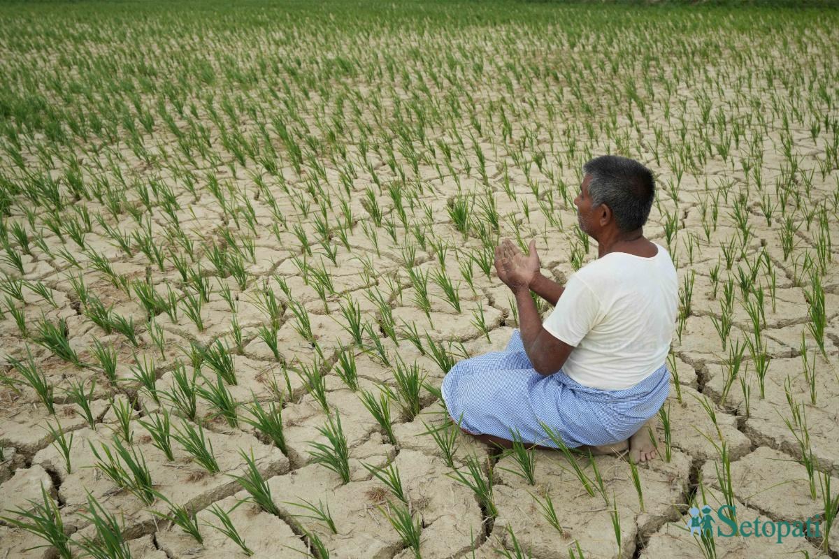 पानी नपर्दा किसानको धानका ब्याड सुक्न थालेको छ भने जेनतेन रोपिएको खेतमा धाँजा फाट्न थालेको छ।