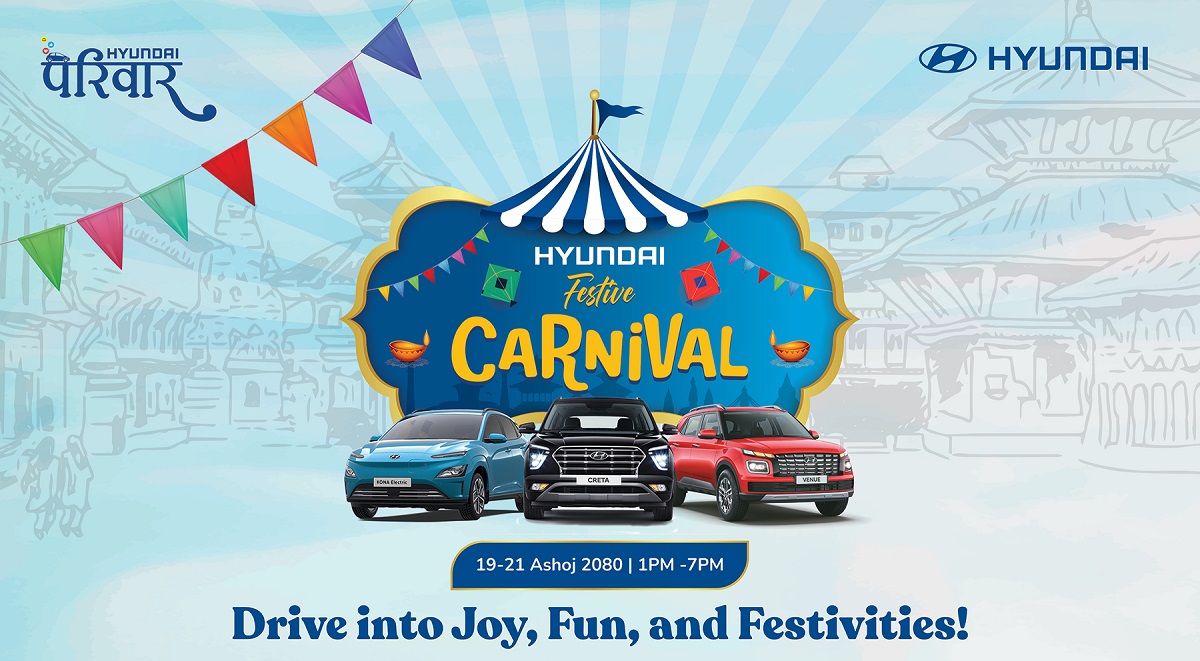 चाडपर्व लक्षित हुन्डाई फेस्टिभ डिलाइटअन्तर्गत 'हुन्डाई फेस्टिभ कार्निभल' असोज १९ गतेदेखि २१ ग्तेसम्म देशभरका सबै सोरुमबाट सञ्चालन हुने कम्पनीले बताएको छ।