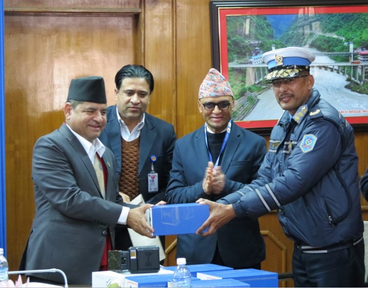 मंगलबार मन्त्रालयमा आयोजित एक कार्यक्रमका बीच इम्बोस्ड  नम्बर प्लेटमा भएको विवरण रिड गर्ने रेडियो फ्रिक्वेन्सी आइडिन्टिफिकेसन मेसिन (आरएफआइडी) मेसिन हस्तान्तरण गरेका हुन्।