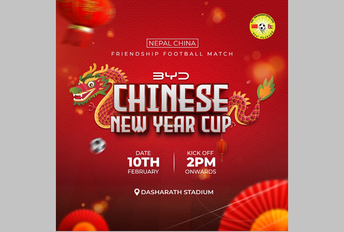 बिवाइडी चाइनिज न्यू इयर कपमा चीनको किन्घाई युथ फुटबल टिम र नेपालको यु–२१ फुटबल टिमबिच प्रतिस्पर्धा हुनेछ जसले उत्साहजनक प्रतिस्पर्धा र मित्रतालाई झल्काउने छ।