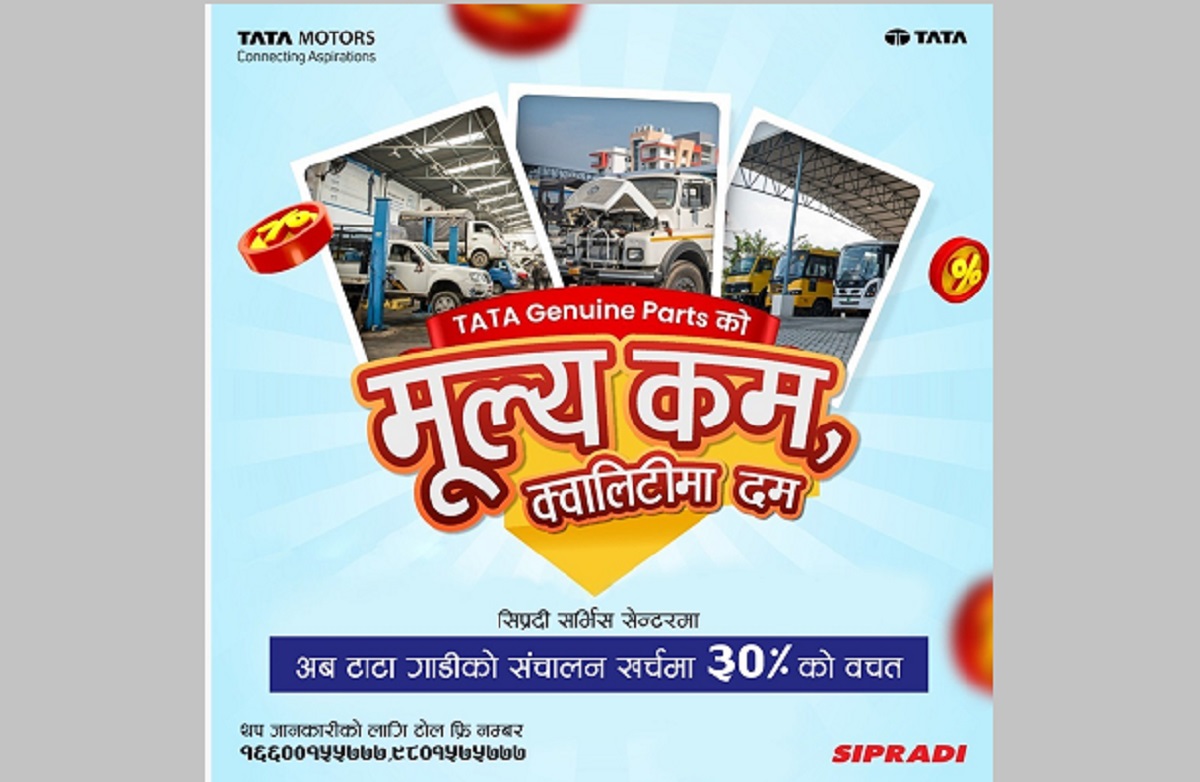 अब सिप्रदीको सम्पूर्ण सर्भिस सेन्टरहरूमा ग्राहकहरूले पहिलेको दाँजोमा कम मूल्यमा टाटा जेन्युइन पार्ट प्राप्त गर्न सक्नेछन्।