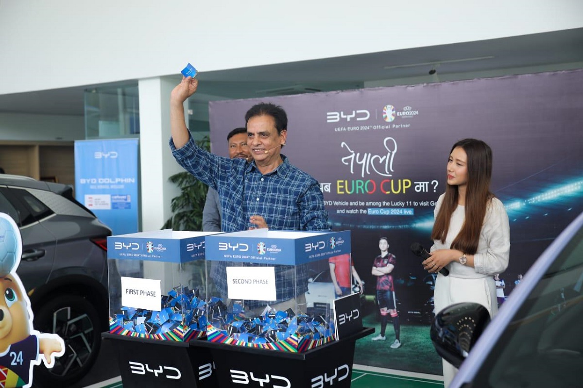 साइमेक्स इन्कको नेपालका लागि आधिकारिक वितरक बिवाइडी अटो इन्डस्ट्री कम्पनीले आयोजना गरेको 'नेपाली अब युरो कपमा' अन्तर्गत लक्की ड्र मार्फत विजेता घोषणा कार्यक्रम सम्पन्न भएको छ।