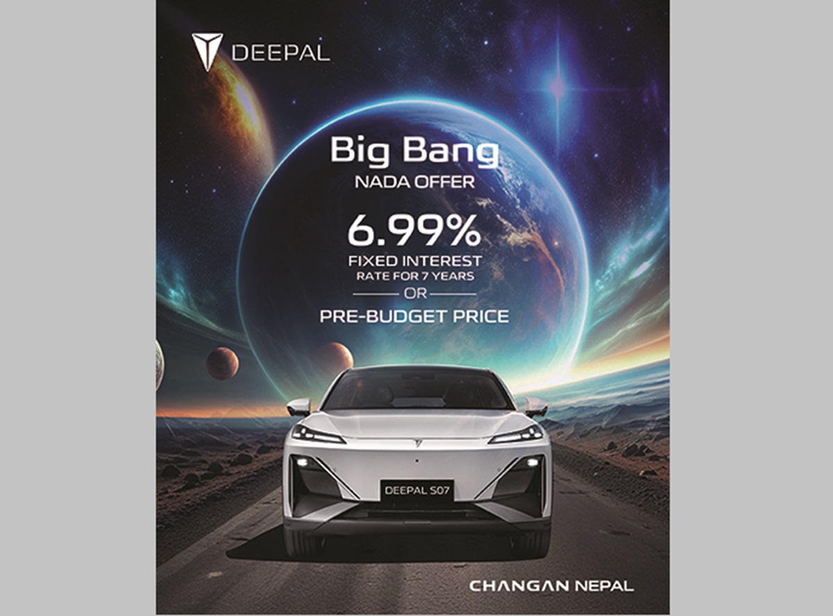 नाडा अटो शोमा बिग ब्यांग अफरअन्तर्गत ग्राहकले अब दिपल एस०७ प्रि बजेट मूल्य ७१ लाख ९९ हजार रूपैयाँ वा सात वर्षका लागि निश्चित ६.९९ प्रतिशत ब्याजदरमा किन्न सक्ने भएका छन्।