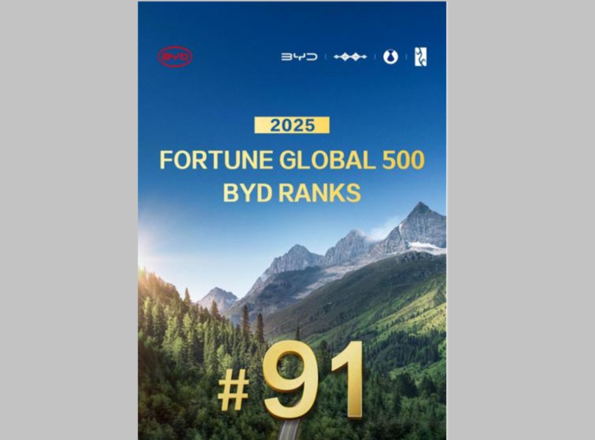बिवाइडी २०२५ फर्च्युन ग्लोबलको सूचीको ९१औं स्थानमा पर्न सफल भएको छ।