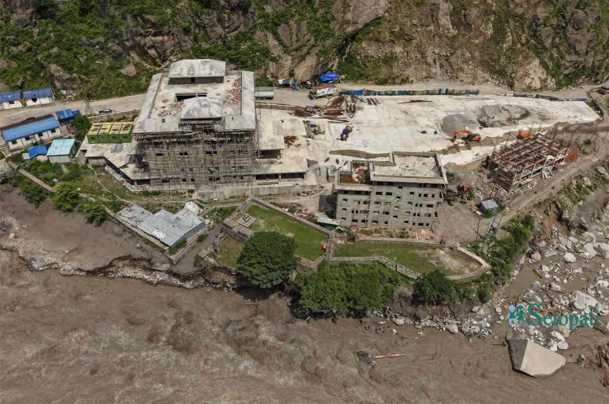 रसुवाको ल्हेन्दे खोलामा आएको बाढीका कारण नेपाल चीन जोड्ने मितेरी पुल, सीमामा अवस्थित निर्माणाधीन ड्राइपोर्ट, भन्सार कार्यालय र आसपासमा पार्किङ गरिएका सवारीसाधन बगाएको थियो। रसुवागढी जलविद्युत् आयोजनालगायतका अन्य भौतिक पूर्वाधारमा क्षति पुगेको थियो।