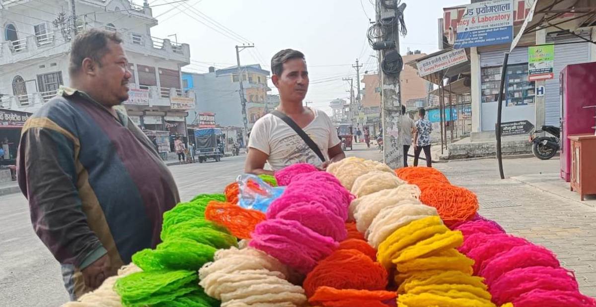 बुटवल उपमहानगरपालिका–१६, रानिगञ्जका गिरिबहादुर नेपाली तिहारको मौकामा एक महिना झिनिया बनाउन र बेच्नमा व्यस्त हुन्छन्।खासमा उनको मुख्य पेसा अटोरिक्सा चलाउनु हो। यसपालि एक महिनाअघि अटोरिक्सा थन्क्याएर तिहारको झिनिया बनाउन थाले।