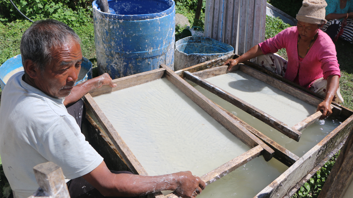 ‘जाडो मौसममा सुक्न अलिक समय लाग्ने भएकाले गर्मी मौसममा भन्दा कम उत्पादन हुन्छ,’ शेर्पाले भने, ‘गर्मी मौसममा बढीमा तीन घन्टाभित्र जालीमा राखेको लेदो सुकेर कागज तयार हुन्छ तर जाडामा सुक्न पाँच लाग्छ।’