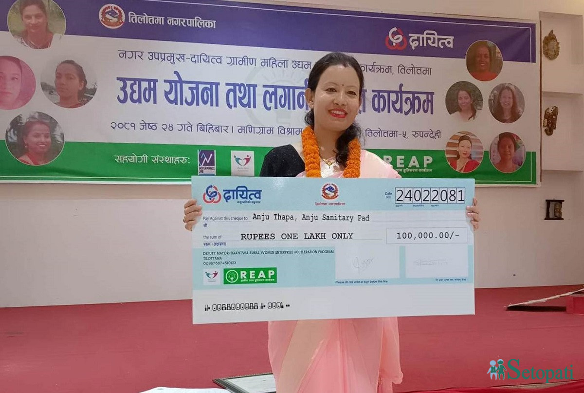 ‘प्रतिष्पर्धामा भाग लिएका तिलोत्तमा नगरपालिका भरिका ८० जना उद्यमीबाट सर्वोत्कृष्ट घोषित भएर उद्योगलाई अझै विस्तार गर्न प्रोत्साहन मिलेको छ, अब छिट्टै नै स्यानिटरी प्याड एट्याच भएको पेन्टी बनाउने योजनामा छु,’ अन्जुले भनिन्।