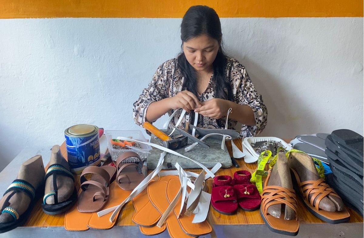 'चप्पलको कच्चा पदार्थ महँगो हुन्छ। एकै पटक धेरै जोरका लागि सामान किन्ने पैसा थिएन,' उनले भनिन्, 'एक-दुई जोर बनाउँदै बेचेँ। त्यसबाट जम्मा भएको पैसाले उत्पादन बढाउँदै लगेँ। कहिलेकाहीँ आमाको सहयोग पनि लिएँ।'