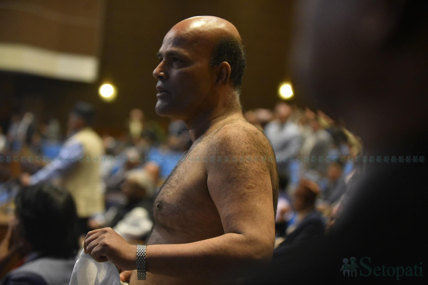 स्वतन्त्र सांसद अमरेशकुमार सिंहले सोमबारको संसद बैठकमै आफूले लगाएका लुगा खोलेका छन्।