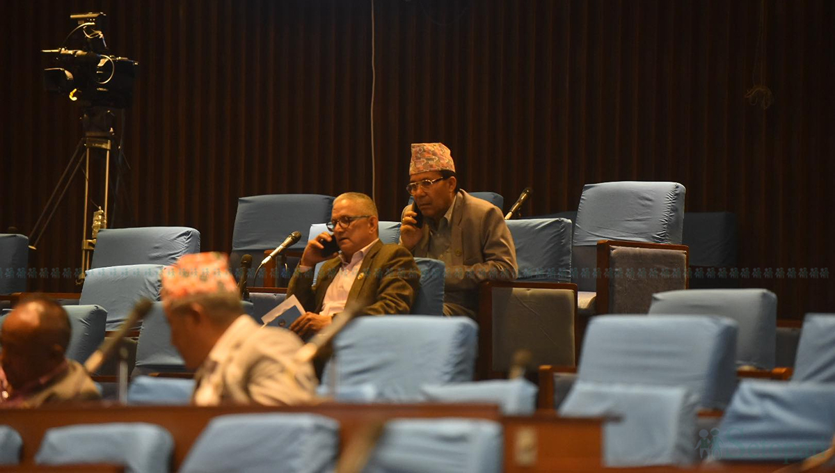 जारी बैठकमा कोही सांसद फोनमा व्यस्त देखिन्छन् भने कोही पत्रिका पढिरहेका छन्। त्यस्तै कोही भने गफमै मस्त छन्।