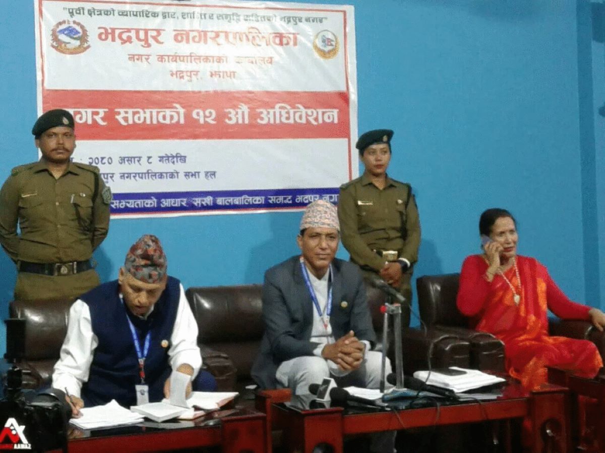 झापाको भद्रपुर नगरपालिकाकोे १२ औं बजेट अधिवेशनमा नगर सभाको गणपूरक संख्या नपुगेर स्थगित भएको छ।