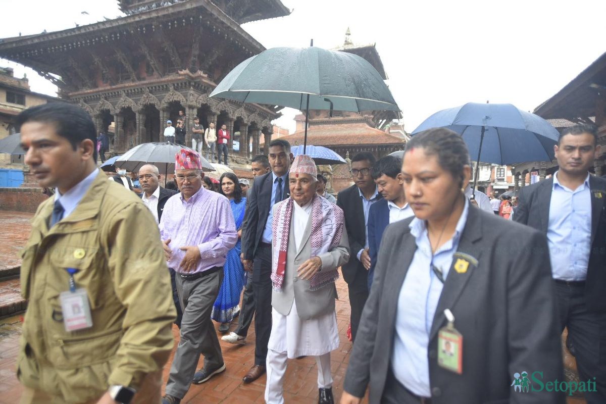 राष्ट्रपति रामचन्द्र पौडेल शुक्रबार बिहानै ललितपुरको पाटन दरबार क्षेत्र अवलोकनमा पुगेका छन्।