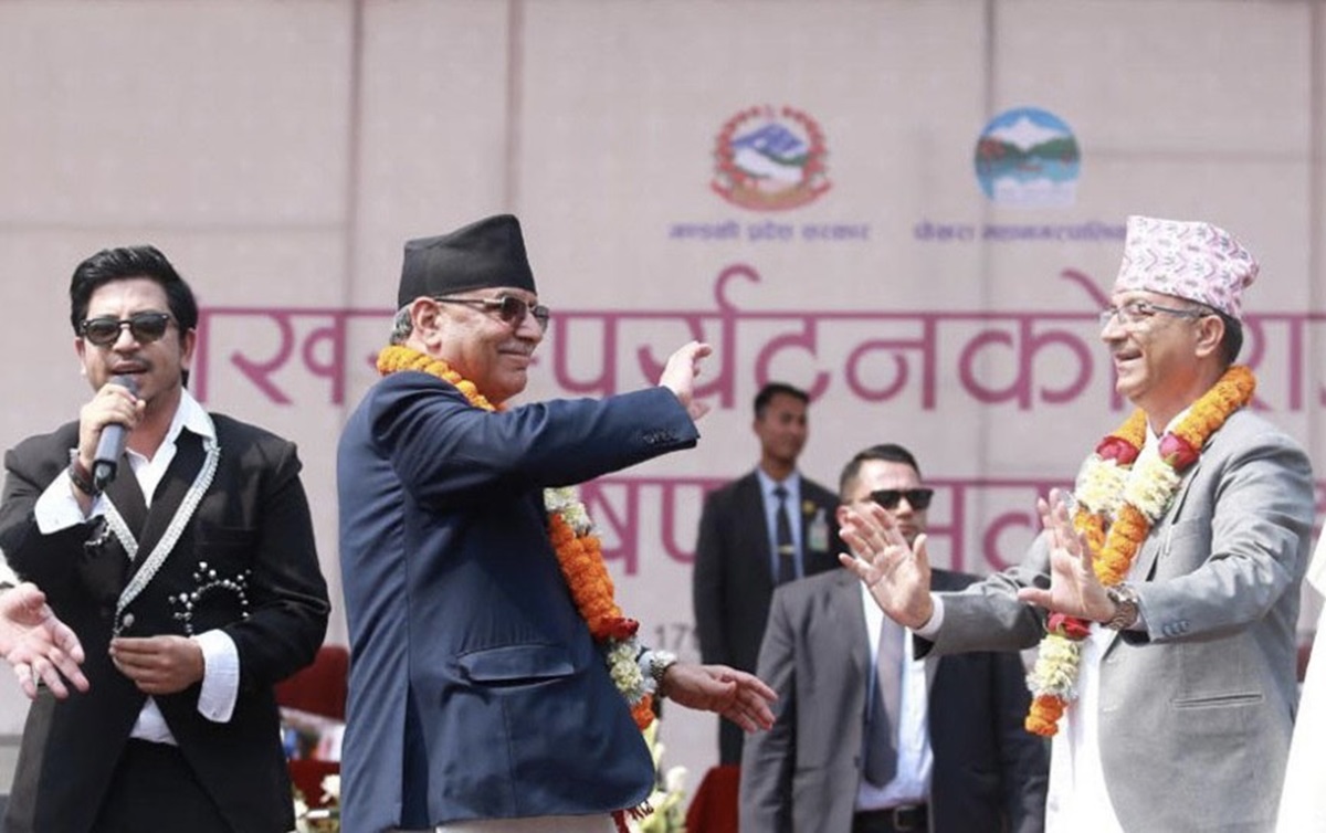 उनको अनुरोधलाई स्वीकार गर्दै प्रधानमन्त्रीसहित गण्डकी प्रदेश सरकारका मुख्यमन्त्री सुरेन्द्रराज पाण्डे, सभामुख कृष्णप्रसाद धिताल, निवर्तमान मुख्यमन्त्री खगराज अधिकारी र पोखरा महानगरपालिकाका प्रमुख धनराज आचार्य मञ्चको अग्रभागमा आएर नाचे।