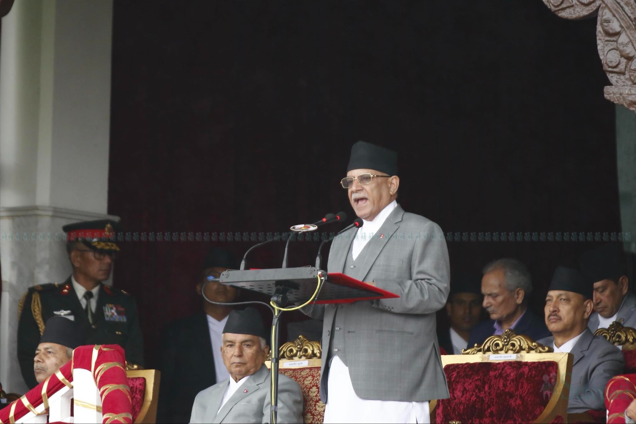 गणतन्त्र दिवस, २०८१ का अवसरमा सैनिक मञ्च टुँडिखेलमा आज आयोजित विशेष समारोहलाई सम्बोधन गर्दै प्रधानमन्त्री दाहालले सामूहिक प्रयास तथा सहकार्यबाट राजनीतिक व्यवस्था परिवर्तन गर्न सकिएको र संघीयता तथा गणतन्त्रसहितको संविधान निर्माण गर्न सफल भएको बताए।