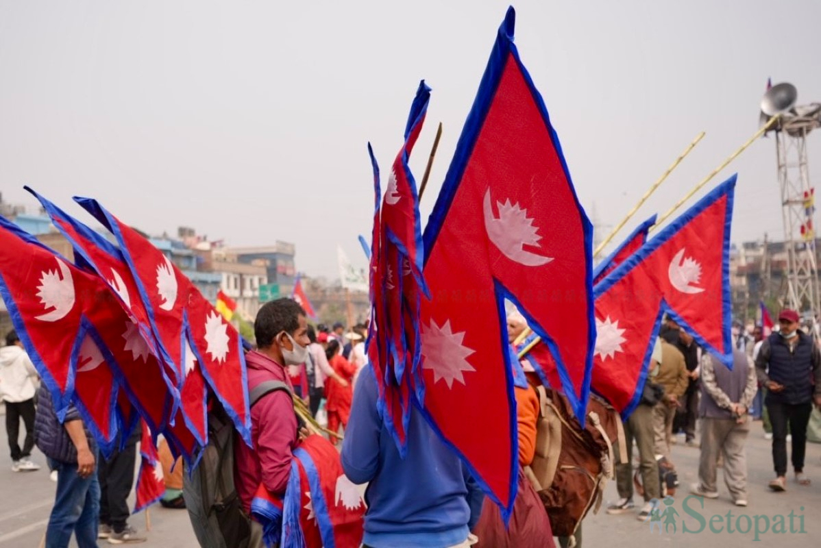 राष्ट्रिय प्रजातन्त्र पार्टी (राप्रपा) को खबरदारी सभामा व्यापारीहरूले उल्लेख्य मात्रामा राष्ट्रिय झण्डाको व्यापार गरेका छन्।