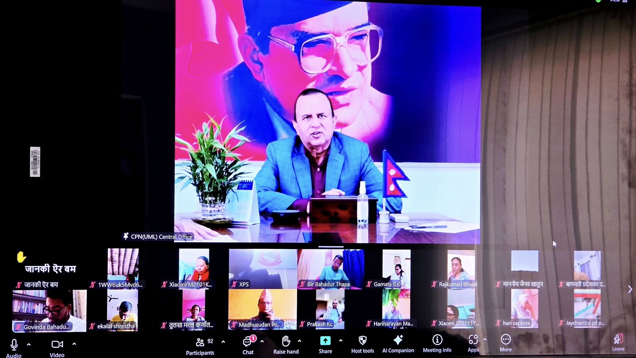 नेकपा (एमाले) ले प्रदेशको नीति तथा कार्यक्रम र बजेटको तयारीका सन्दर्भमा प्रदेश सरकारका आफ्ना मुख्यमन्त्री, मन्त्री र प्रदेश सभा सदस्यसँग भर्चुअल बैठक गरेको छ।