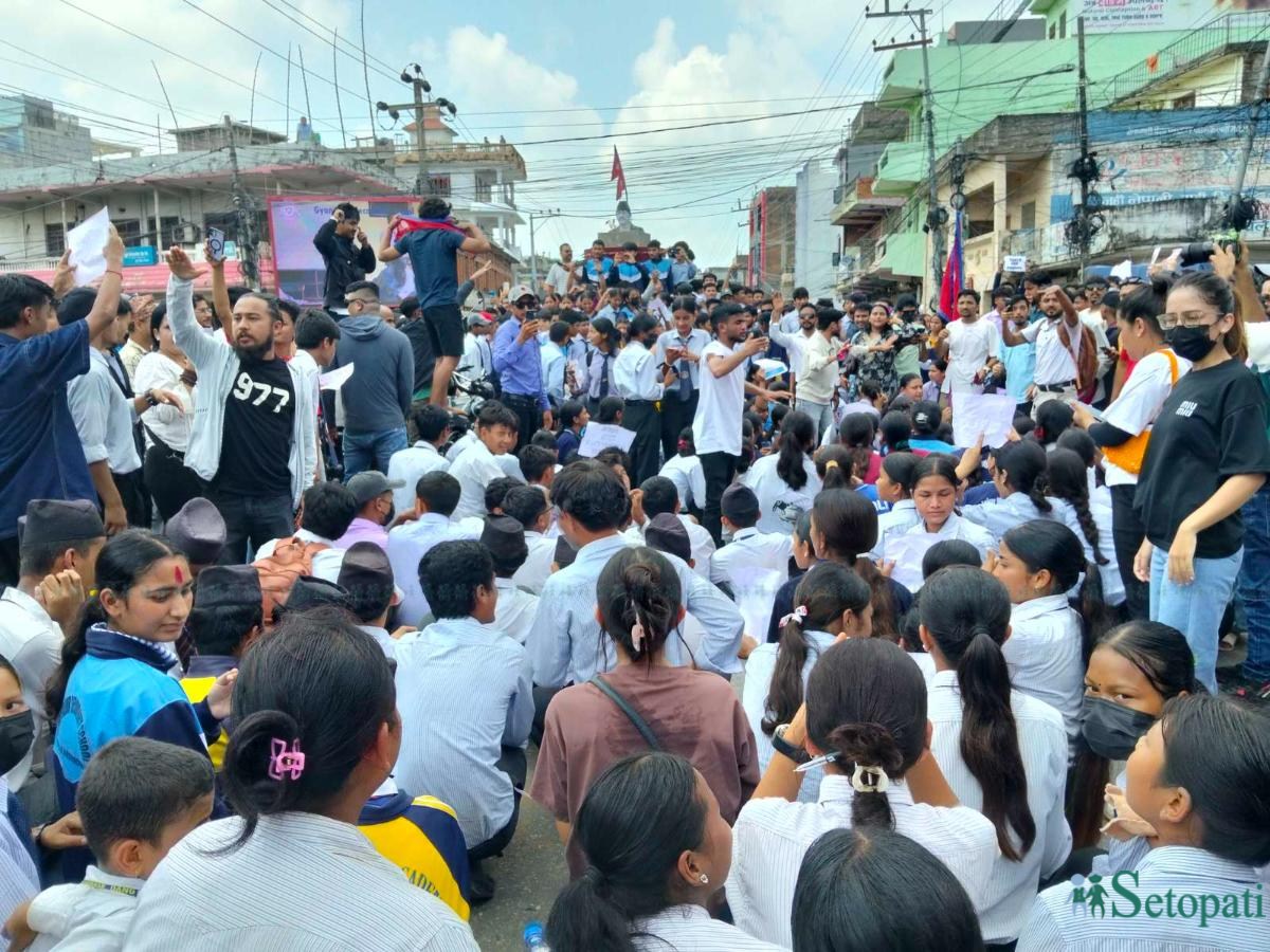 दाङको तुलसीपुरमा भएको जेनेजी पुस्ताको आन्दोलन नियाल्दा अधिकांश विद्यार्थी युनिफर्ममै आएका थिए।