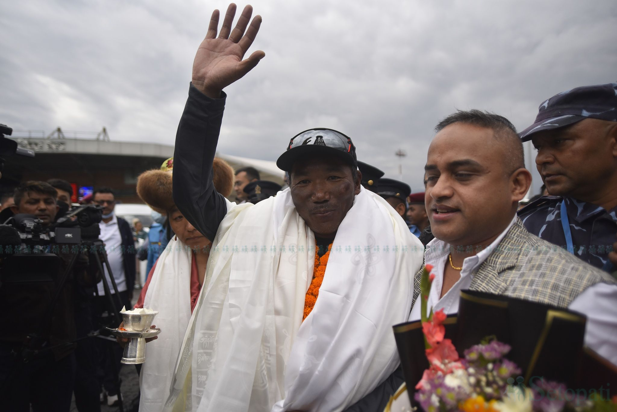 कीर्तिमानी आरोही कामिरिता शेर्पा २८ औं पटक सगरमाथाको सफल आरोहण गरेर काठमाडौं फर्किएका छन्।