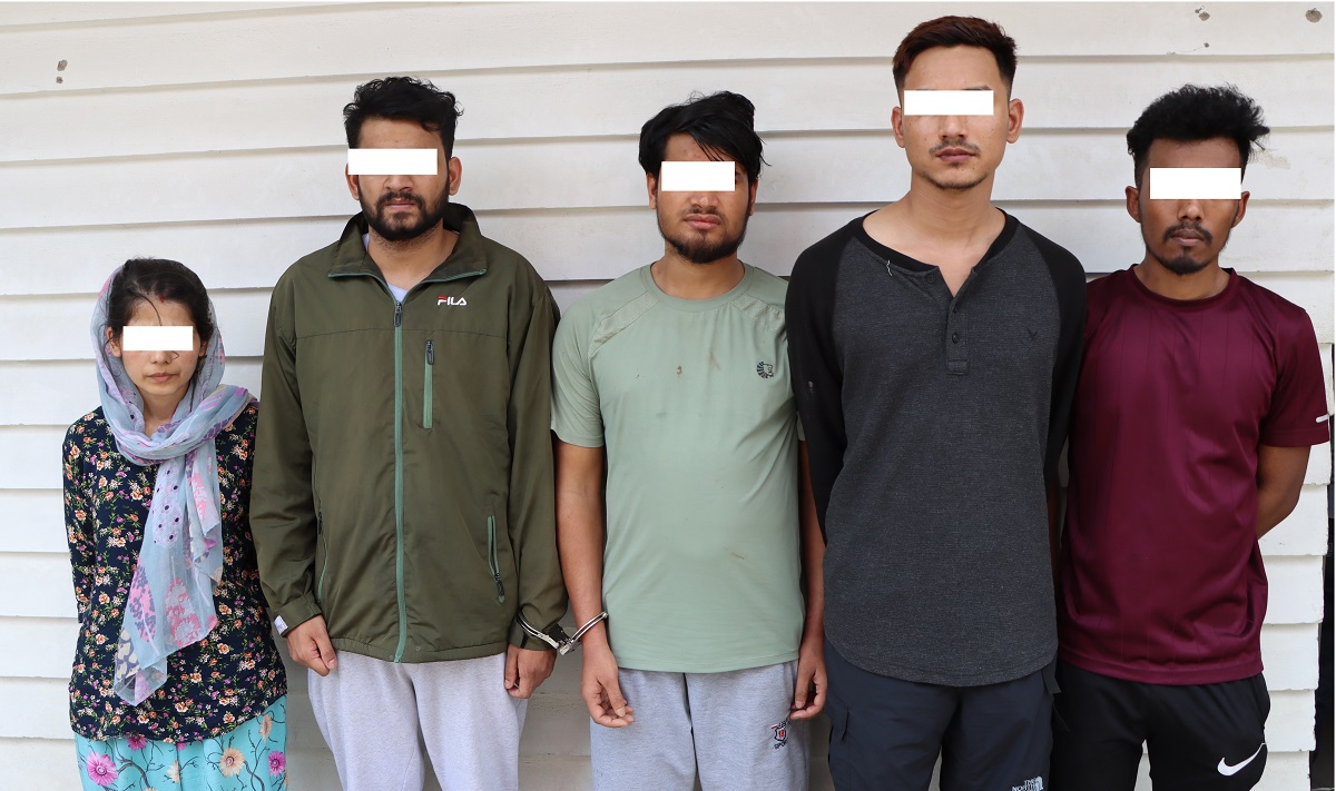 पक्राउ पर्नेमा कैलली घर भई काठमाडौंको मैजुबहाल बस्ने २९ वर्षीय दिनेश खड्का, उनकी २८ वर्षीया श्रीमती अनिता धिताल, भक्तपुरको मध्यपुर ठिमी-४ बस्ने २७ वर्षीय दिपेश श्रेष्ठ, कञ्चनपुर घर भई बुद्धनगर बस्ने २५ वर्षीय दिनेश चन्द र नुवाकोट घर भई नागार्जुन बिसी क्याप स्किल बस्ने २४ वर्षीय आशिष लामिछाने छन्। उनीहरूलाई प्रहरीले मंगलबार विभिन्न ठाउँबाट पक्राउ गरेको हो।