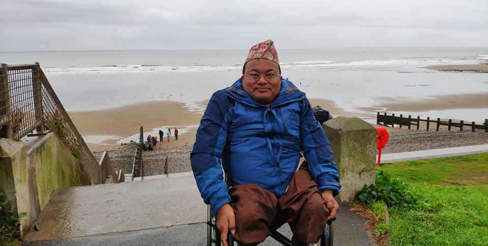 ‘माथिल्लो तला चढ्न सक्ने भएपछि घिस्रिएरै गाउँ डुल्न थालें,’ उनले खुसी हुँदै सुनाए।