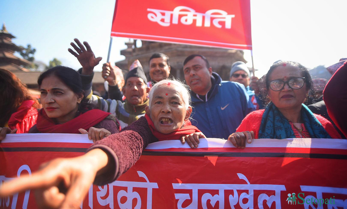 समितिले पाटन दरबार स्क्वायरमा दबाबमूलक र्याली निकालेको हो।