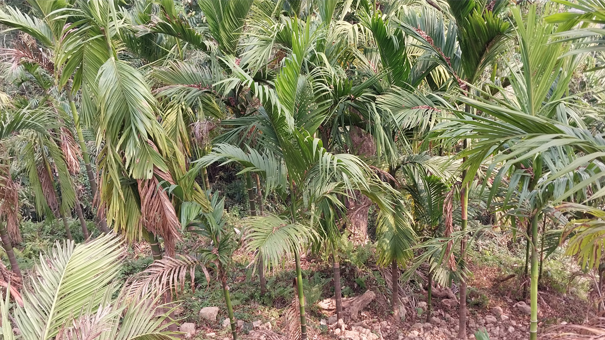 ‘केहीमा फल लागेको छ भने केही फल्ने अवस्थामा छन्,’ उनले भने, ‘व्यापारी बगानमा नै आएर खरिद गर्ने भएकाले बजारको चिन्ता छैन। काँचो सुपारी बगानबाटै प्रतिकिलो ५० रूपैयाँका दरले बिक्ने गरेको छ।’