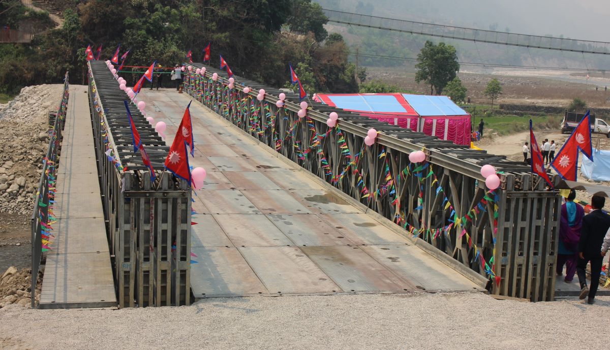 उत्तरी धादिङको तीन गाउपालिकालाई प्रत्यक्ष लाभ पुर्याउने पुलको आइतबार संघीय सांसद रामनाथ अधिकारी र नेपाली सेनाका प्रधानसेनापति प्रभुराम शर्माले संयुक्त रुपमा उद्घाटन गरे।