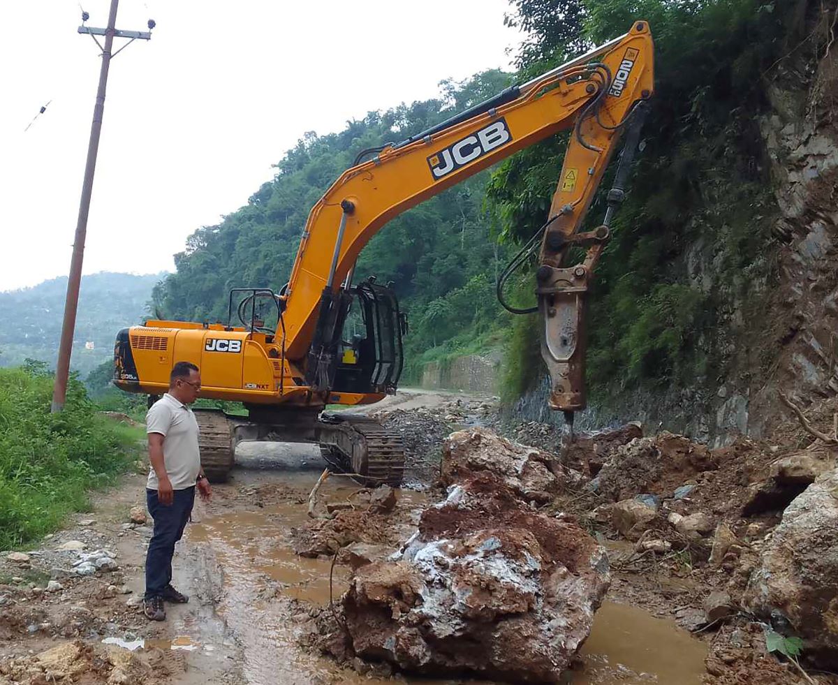 पहिराले विभिन्न ठाउँमा ठूलाठूला ढुङ्गा खसेपछि गत शनिबारदेखि उक्त मार्ग अवरुद्ध थियो।