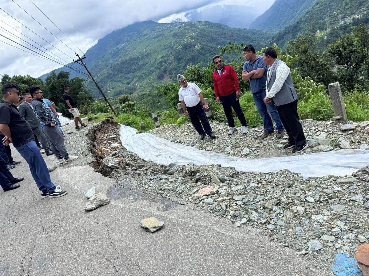 गत असार ३० गतेको राति आएको अविरल वर्षाका कारण करिब ७० मिटर लामो सडक भासिनुका साथै वरपरका केही घर चर्किएका छन्।
