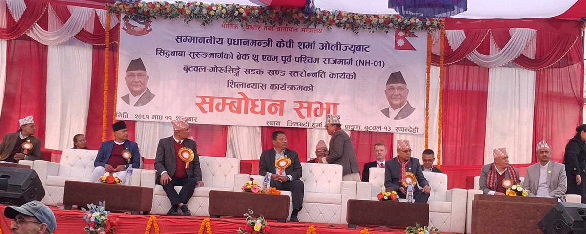 बुटवलदेखि गोरूसिंगेसम्मको ५० किलोमिटर सडक स्तरोन्नतिको लागि प्रधानमन्त्री केपी शर्मा ओलीले भर्चुअल माध्यमबाट शिलान्यास गरेका हुन्।