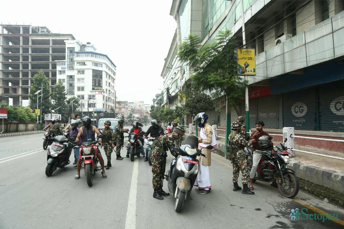 ललितपुरमा सादोबाटो, एकान्तकुना, जावलाखेल, पुल्चोक लगायत मूल सडकका हरेक चोकमा सेना बसेको छ। सेनाले अस्पताल र एम्बुलेन्सबाहेक अरू सबैलाई रोकेर सोधपुछ गरिरहेको छ। पुल्चोक र एकान्तकुनामा तरकारी पसलहरू पनि खुलेका छन्।