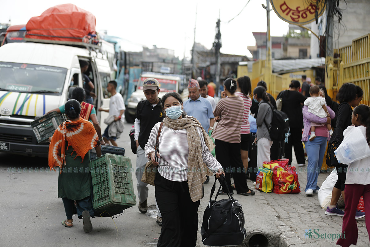 यात्रीहरूको बाक्लो भीडले काठमाडौंलाई विस्तारै सुनसान बनाउँदैछ भने गाउँघरलाई रंगीचंगी बनाइरहेको छ।