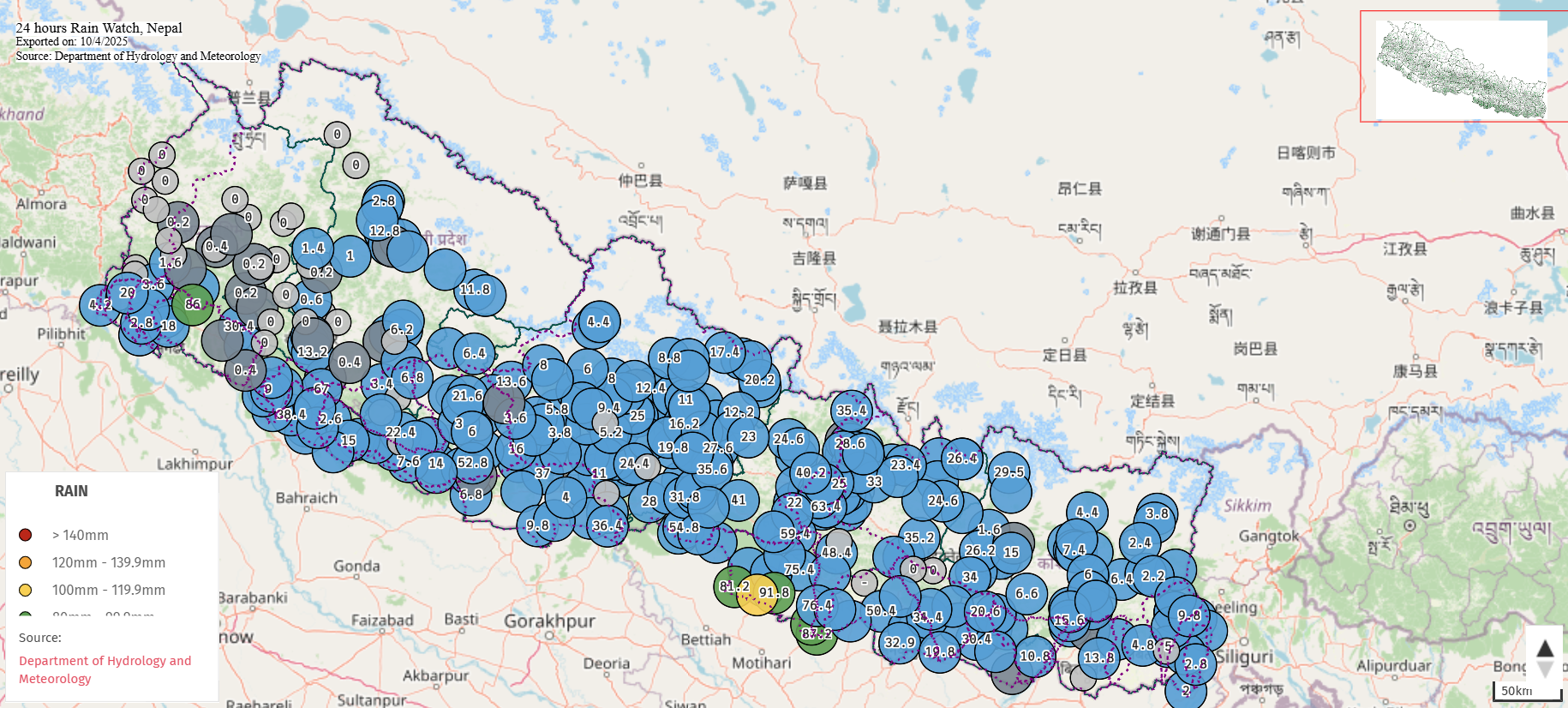 वर्षा गराउने प्रणाली पूर्व–उत्तर पूर्व दिशातर्फ सरिरहेको र ती क्षेत्रहरूमा थप वर्षा हुने सम्भावना रहेकोले सतर्कता अपनाउन पनि महाशाखाले भनेको छ।
