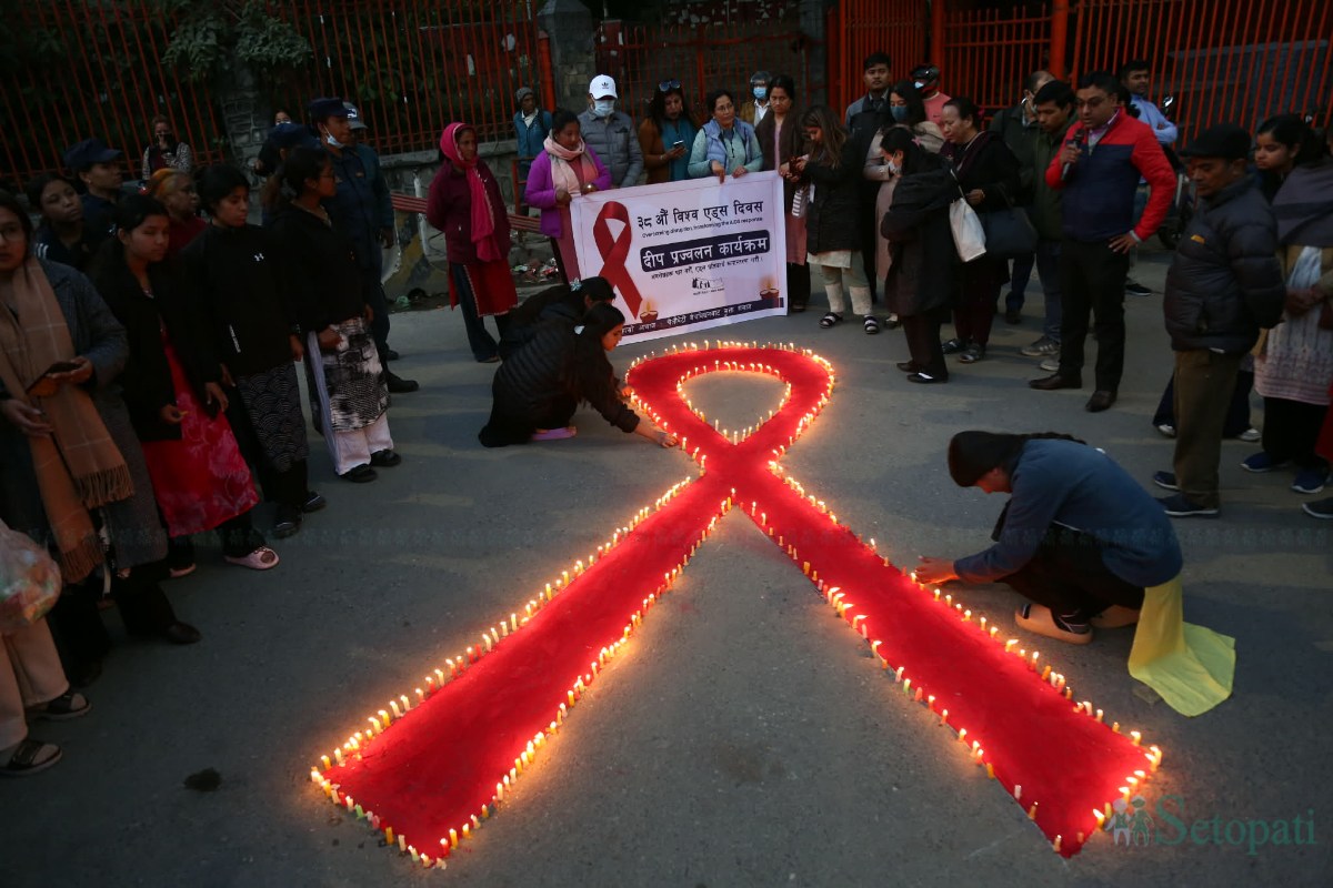 विश्व एड्स दिवसको पूर्वसन्ध्यामा काठमाडौंमा दीप प्रज्वलन गरिएको छ।