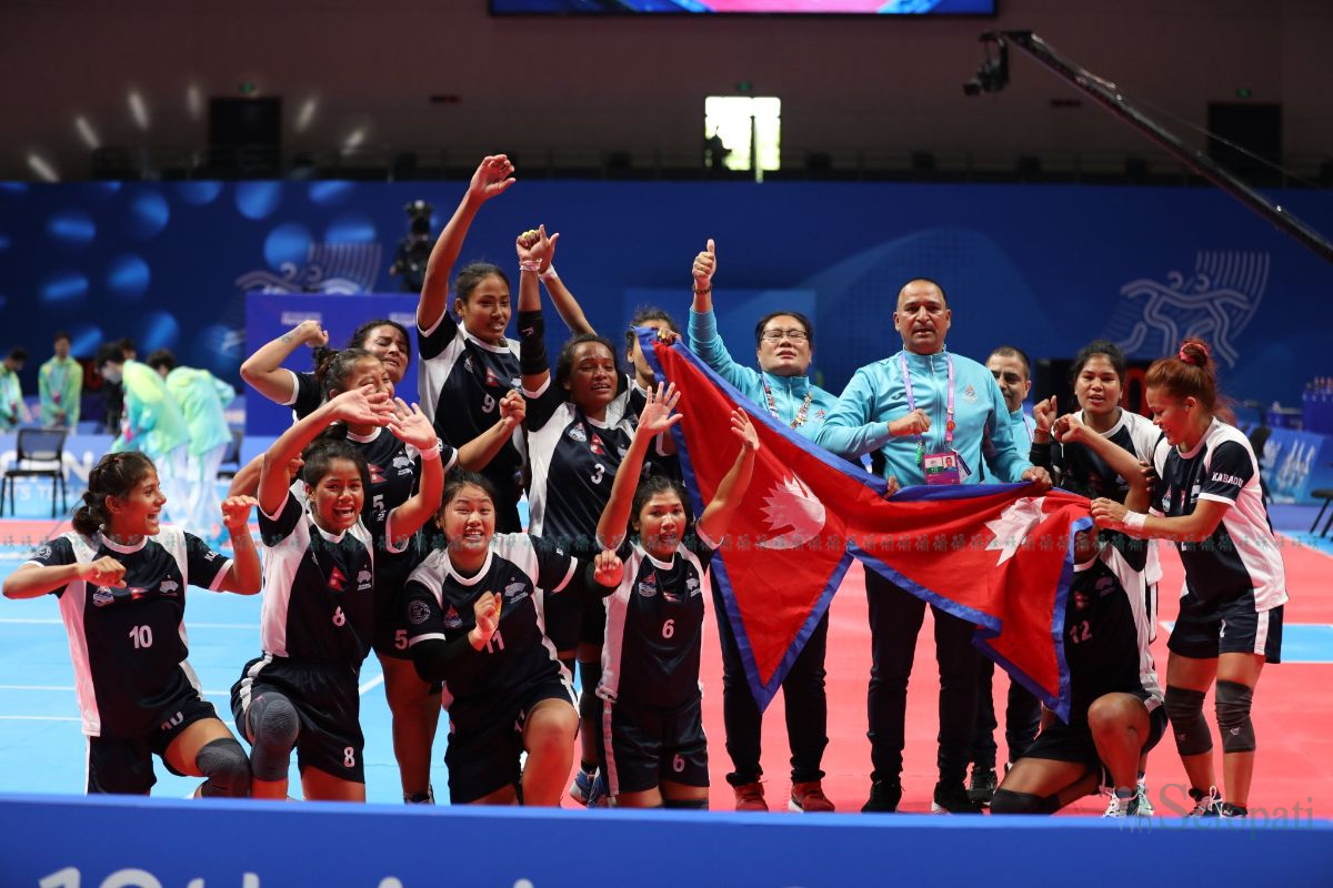 महिला कबड्डी टिमले एसियाली खेलकुदको आफ्नो डेब्यू खेलमै जित निकालेसँगै पदक नजिक पुग्यो। अब समूहमा नेपाल र इरान तथा बंगलादेश र इरानबीच खेल हुन बाँकी छ। नेपालले इरानसँग हारे पनि सेमिफाइनल पुगेर पदक जित्ने अवस्था छ। त्यसका लागि बंगलादेशले इरानसँग हार्नु पर्छ। कबड्डीमा सेमिफाइनलम पराजित हुने दुई टिमलाई पदक दिने नियम छ।