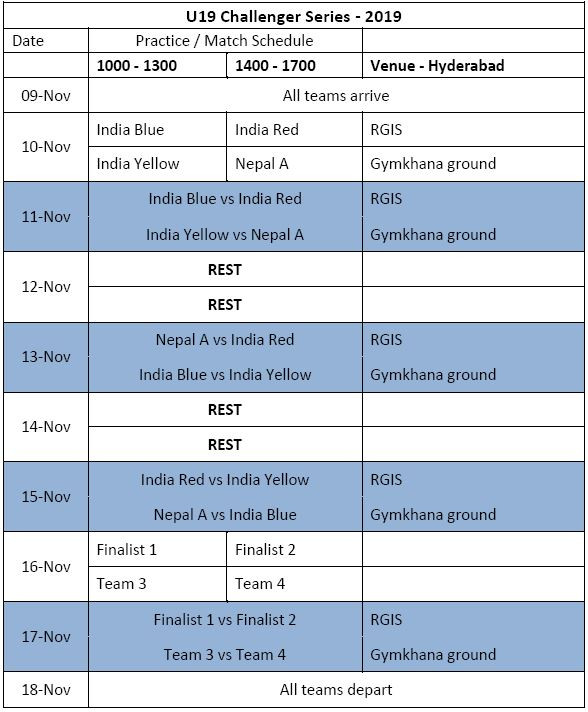 सिरिजमा भारतको तीन टिम रहने छ। जसलाई भारत 'ब्लु', भारत 'रेड' र भारत 'एल्लो' नाम दिइएको छ ।