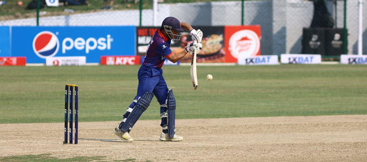 पछि कप्तान रोहित कुमार पौडेल र भीम सार्कीले ब्याटिङलाई लयमा फर्काए। पौडेलले ४२ रनको योगदान गरे भने सार्कीले अर्धसतकीय पारी खेले।