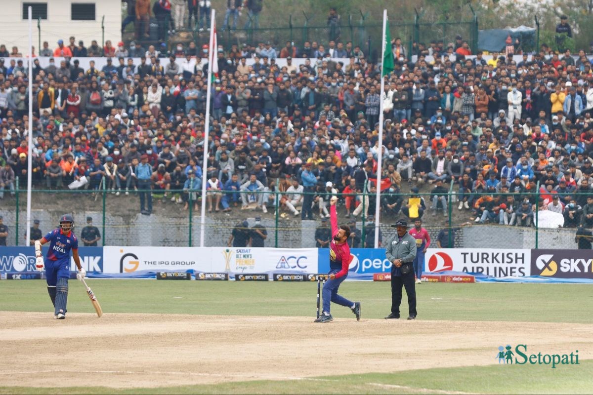 नेपाली टिमको हौसला बढाउन त्रिवि क्रिकेट मैदानमा हजारौं समर्थक उपस्थित भएका छन्।
