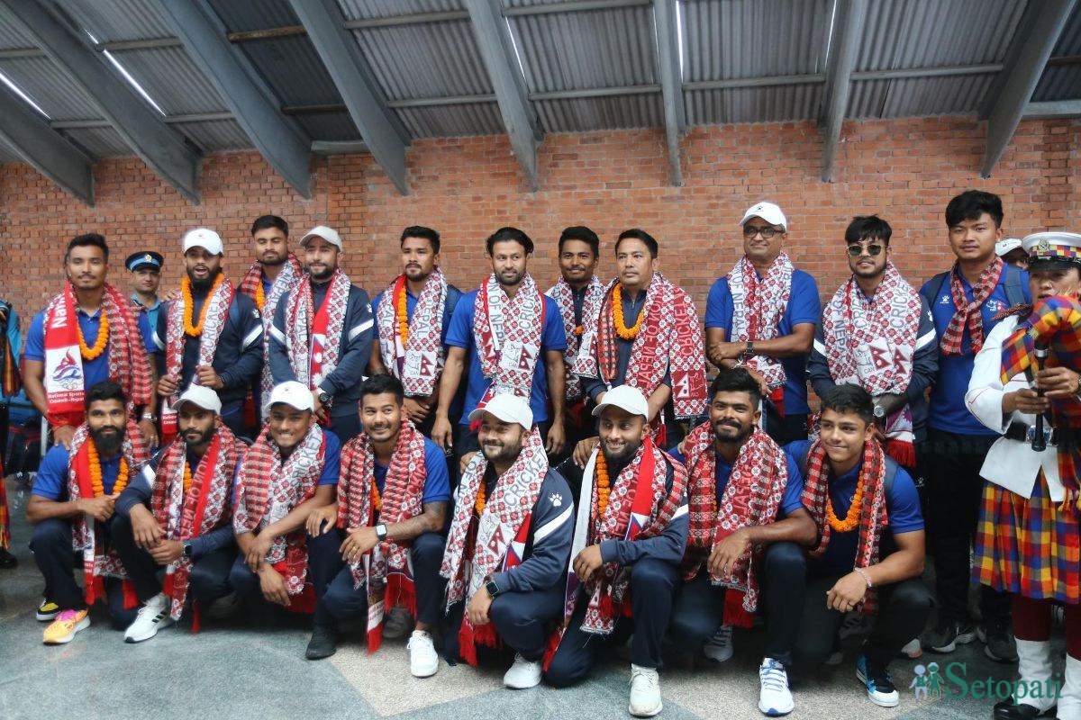 त्रिभुवन विमानस्थलमा नेपाल क्रिकेट संघ (क्यान)का पदाधिकारीले क्रिकेट खेलाडीहरूलाई स्वागत गरेका थिए।