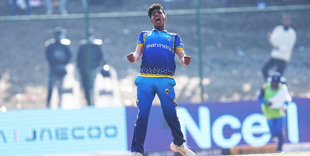 निशमलाई आउट गरेको तीन बलपछि उनले मोहम्मद मोसिनलाई पनि एलबिडब्लूको धरापमा पर्दै एकै ओभरमा दुई विकेट लिँदै खेल रोमाञ्चक मोडमा पुर्याएका थिए। तर अन्तिम ओभरसम्म कर्णालीका अरू बलर चल्न सकेनन्।