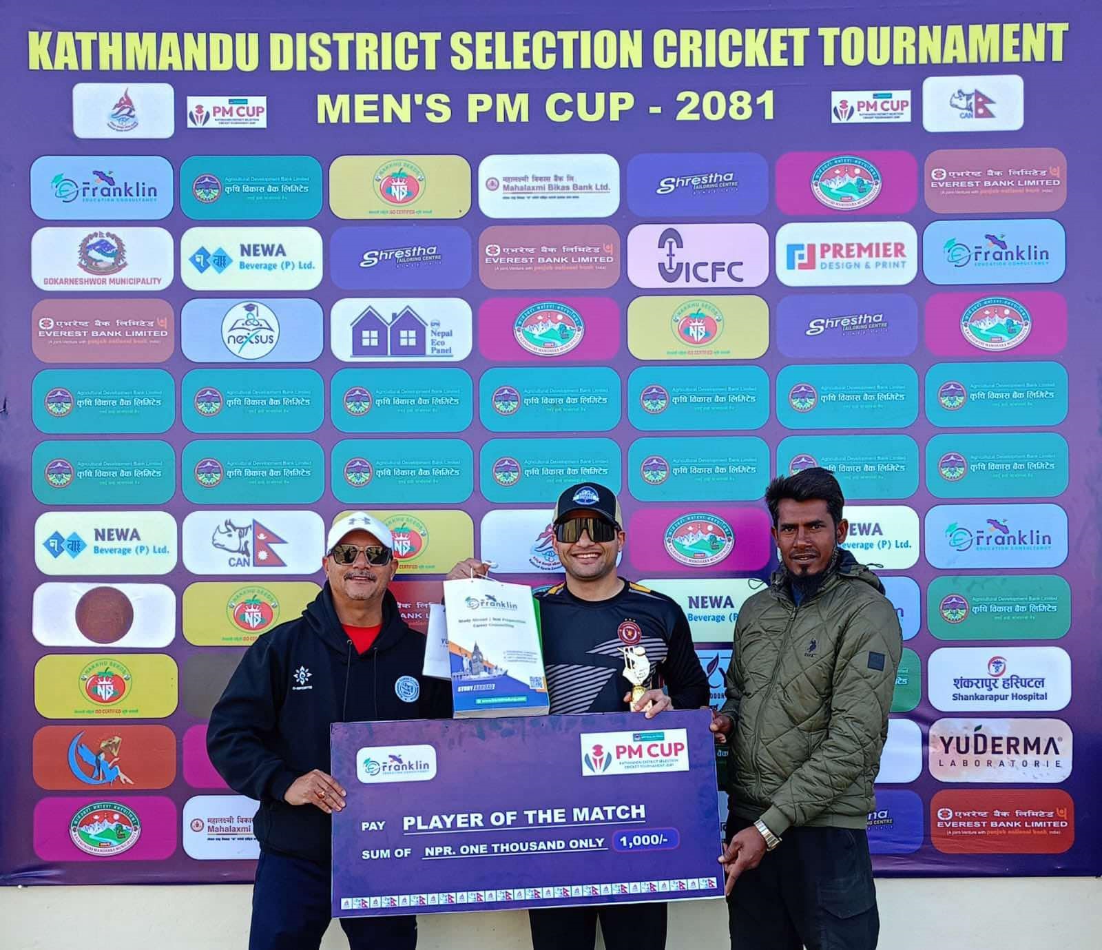 यस्तै सोनु देवकोटाको ४४ रन र रिजन थापाको ४१ रनको मद्दतमा महावीरले ४ विकेटको क्षतिमा २०९ रन जोड्यो।