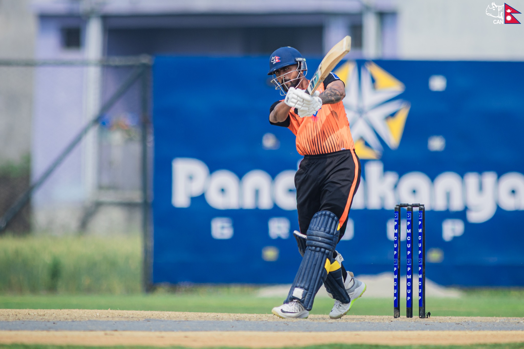 पवन सर्राफले ८५ बल खेलेर ९२ रन जोड्ने क्रममा ११ चौका र २ छक्का प्रहार गरेका थिए। दिपेश दासले नटआउट ५६ रन बनाए। उनले ६० बलमा ७ चौका र १ छक्का प्रहार गर्न सफल भए।
