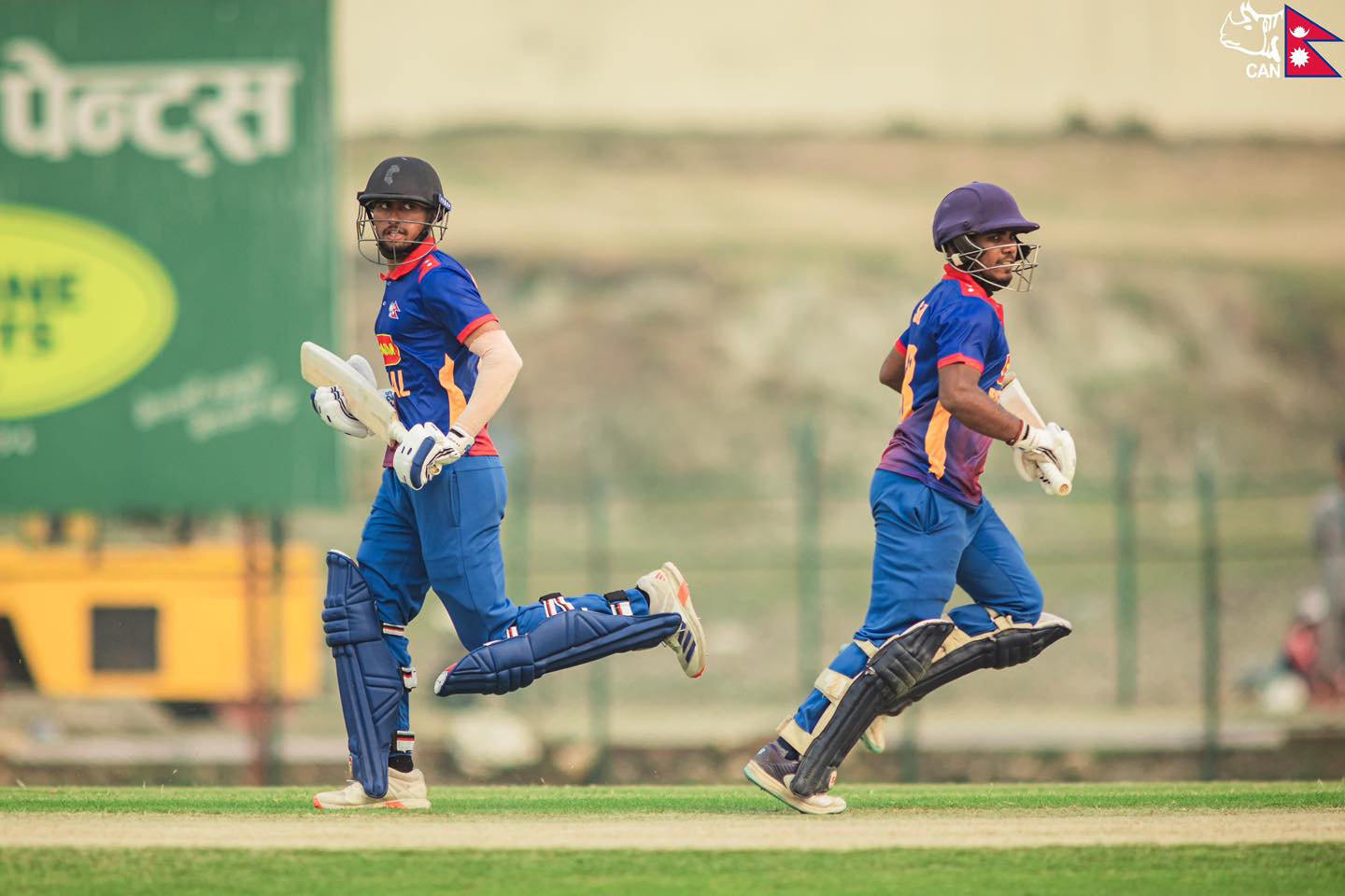 नेपालका लागि ओपनर साहिल पटेलले ६४ रन जोडे। उनले ११९ बलमा ६ चौका प्रहार गरे। निरजकुमार यादव १५ रन र कप्तान नरेन भट्ट १३ रन बनाएर आउट भए।