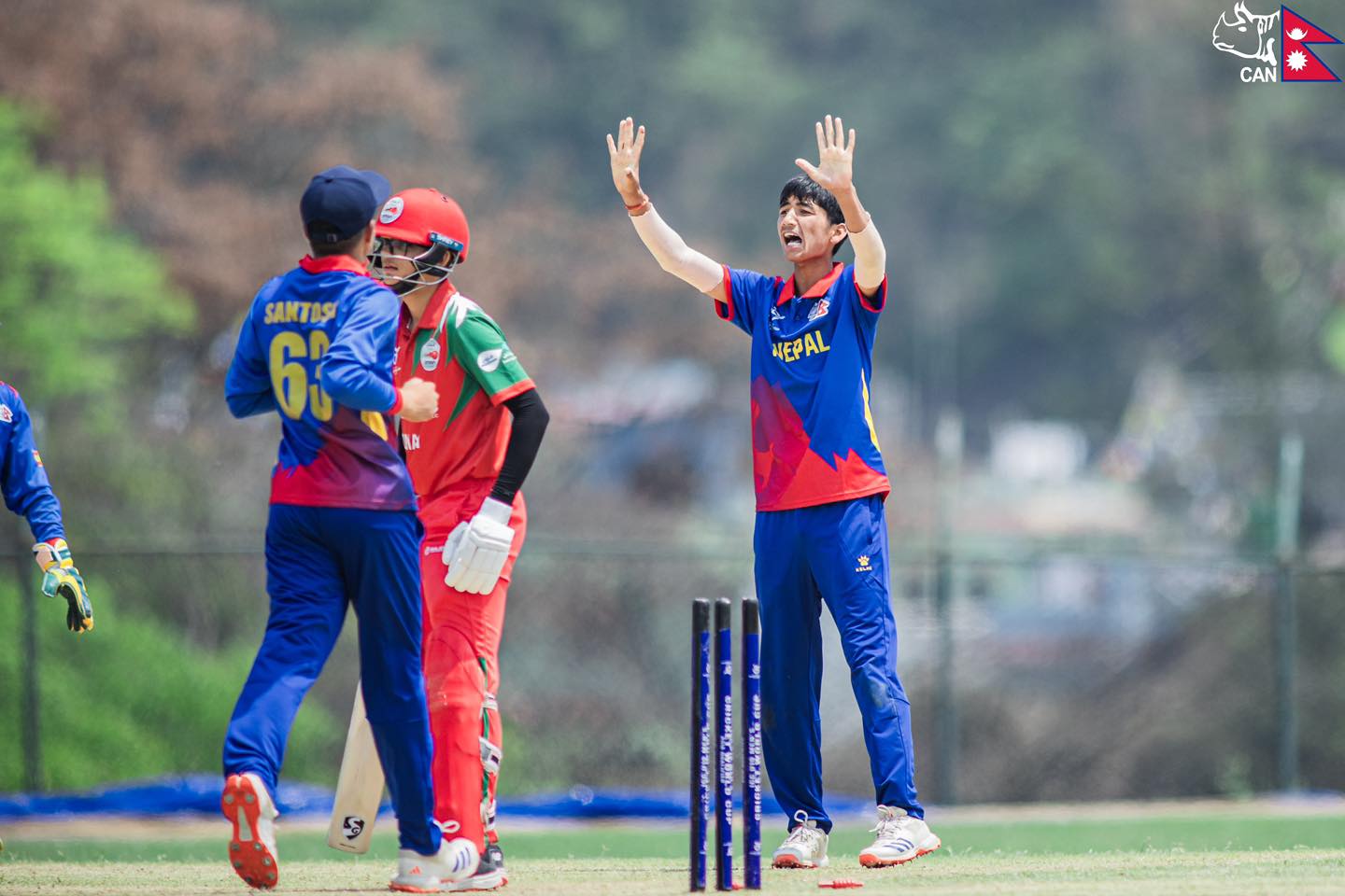 आइसिसी यू-१९ विश्वकप अन्तर्गत एसिया छनोटको दोस्रो खेलमा नेपालले ओमानलाई ११७ रनमा अलआउट गरेको छ।